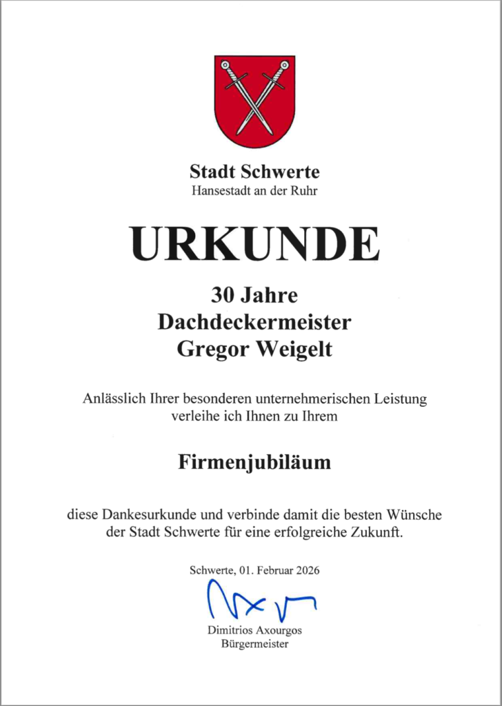 30 Jahre Dachdeckermeister Gregor Weigelt